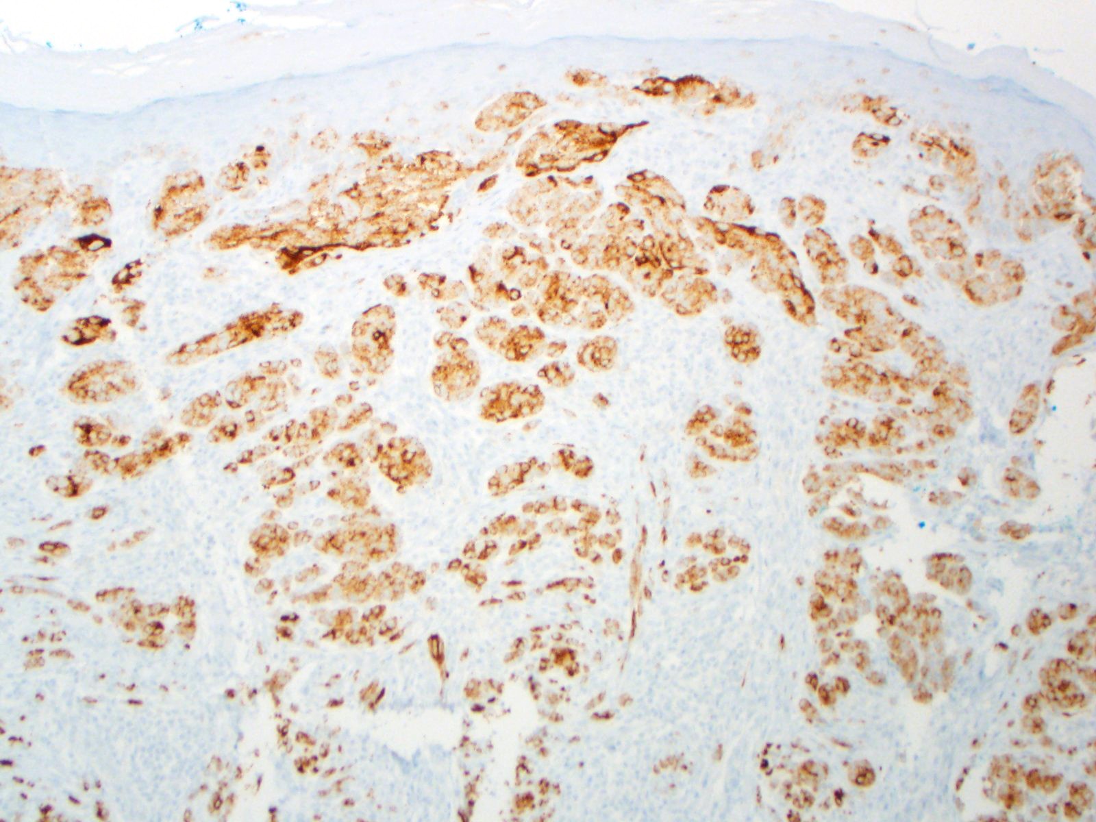 Most urothelial carcinomas, other non-mammary carcinomas, and melanomas